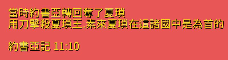 當時約書亞轉回奪了夏瑣、用刀擊殺夏瑣王.素來夏瑣在這諸國中是為首的。