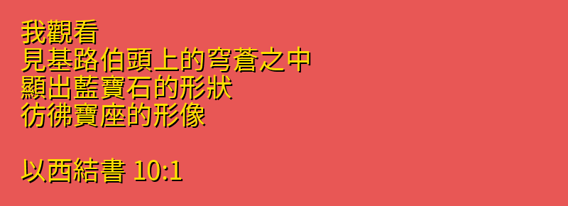 我觀看、見基路伯頭上的穹蒼之中、顯出藍寶石的形狀、彷彿寶座的形像。