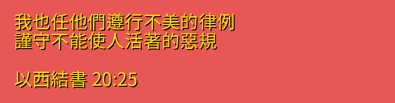 我也任他們遵行不美的律例、謹守不能使人活著的惡規。