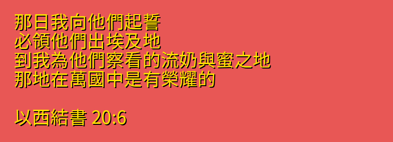 那日我向他們起誓、必領他們出埃及地、到我為他們察看的流奶與蜜之地.那地在萬國中是有榮耀的。