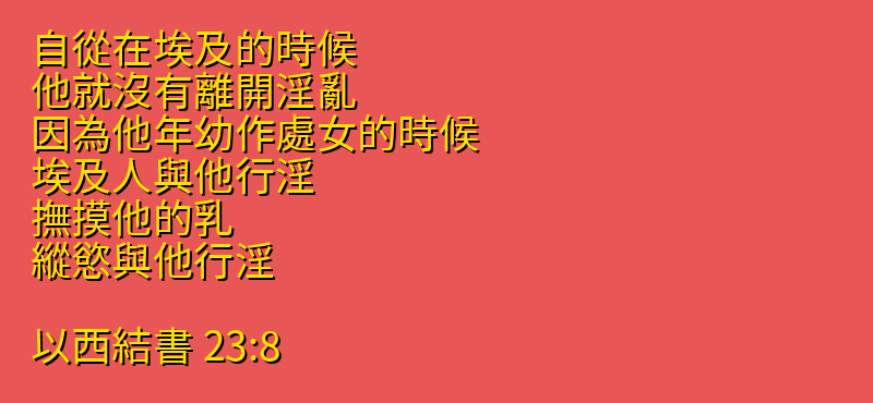 自從在埃及的時候、他就沒有離開淫亂.因為他年幼作處女的時候、埃及人與他行淫、撫摸他的乳、縱慾與他行淫。