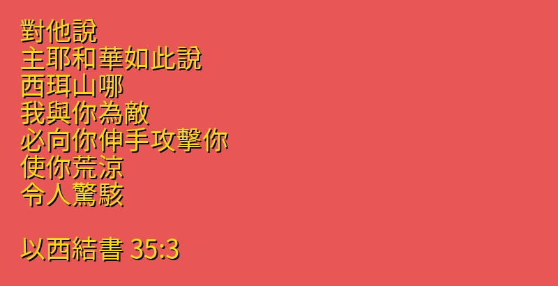 對他說、主耶和華如此說、西珥山哪、我與你為敵、必向你伸手攻擊你、使你荒涼、令人驚駭。