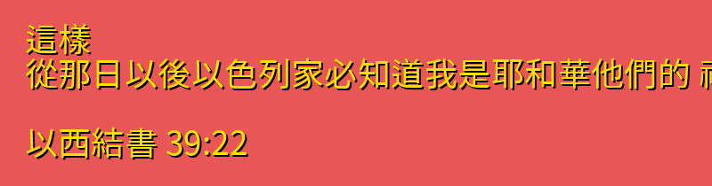 • 39:22 這樣、從那日以後以色列家必知道我是耶和華他們的 神。