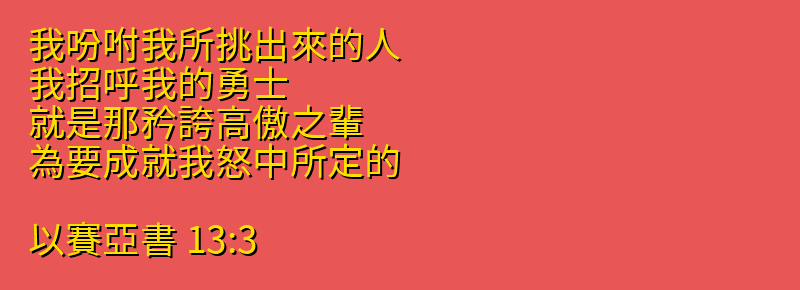 我吩咐我所挑出來的人.我招呼我的勇士、就是那矜誇高傲之輩、為要成就我怒中所定的。