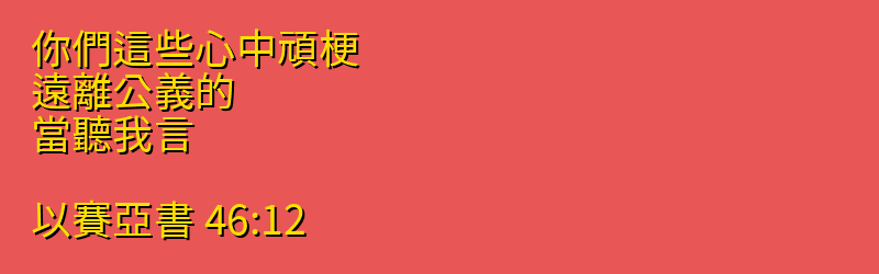 你們這些心中頑梗、遠離公義的、當聽我言.