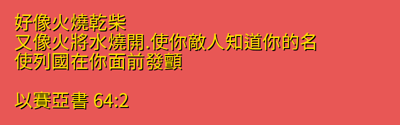 好像火燒乾柴、又像火將水燒開.使你敵人知道你的名、使列國在你面前發顫。