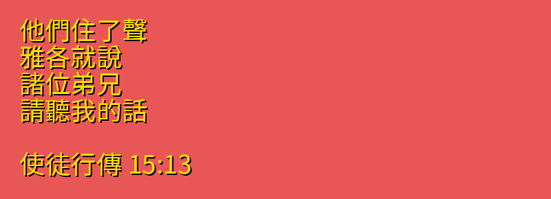 今日分享的中文聖經:「他們住了聲、雅各就說、諸位弟兄、請聽我的話。」來自聖經「使徒行傳」第「15章13節」,你可以繼續向下拉看到聖經卷書完整章節。每日中文聖經從神的話語中聆聽神的聲音,引導我們的人生,指導我們人生的方向,讓我們做出正確的選擇,而做出這些正確選擇的原則都在聖經中,所以我們需要讀神的話語,認識他的話語,把神的話語藏在心裡。