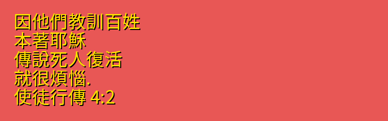• 4:2 因他們教訓百姓、本著耶穌、傳說死人復活、就很煩惱.