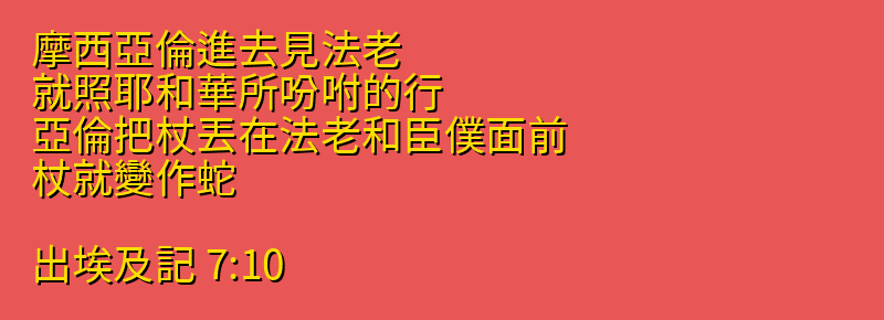 摩西亞倫進去見法老、就照耶和華所吩咐的行、亞倫把杖丟在法老和臣僕面前、杖就變作蛇。