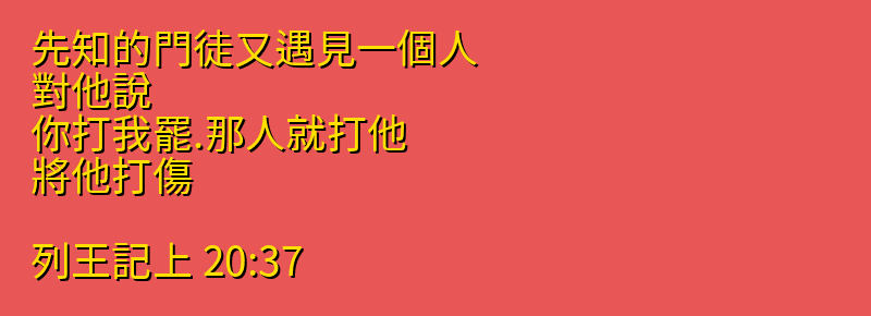 • 20:37 先知的門徒又遇見一個人、對他說、你打我罷.那人就打他、將他打傷。