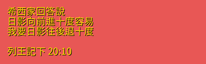 希西家回答說、日影向前進十度容易.我要日影往後退十度。