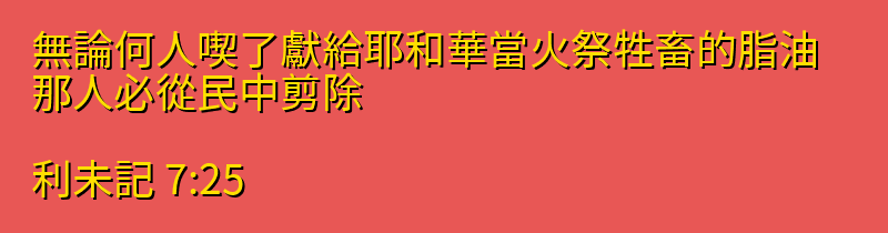 無論何人喫了獻給耶和華當火祭牲畜的脂油、那人必從民中剪除。