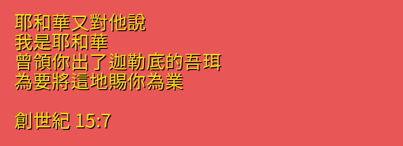 耶和華又對他說、我是耶和華、曾領你出了迦勒底的吾珥、為要將這地賜你為業。