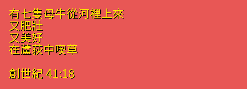 有七隻母牛從河裡上來、又肥壯、又美好、在蘆荻中喫草。