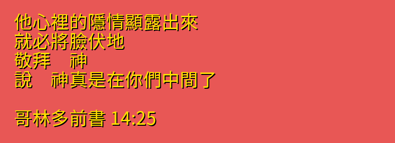站外尋找哥林多前書14章25節更多資料: