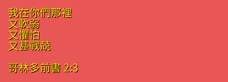 我在你們那裡、又軟弱、又懼怕、又甚戰兢。