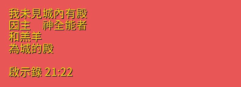 我未見城內有殿、因主 神全能者、和羔羊、為城的殿。
