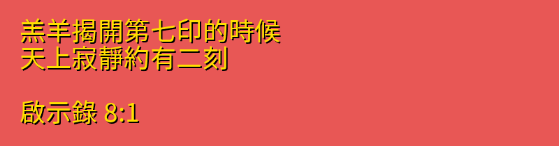- 8:1 羔羊揭開第七印的時候、天上寂靜約有二刻。