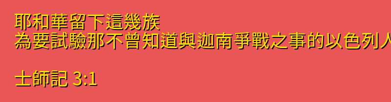 - 3:1 耶和華留下這幾族、為要試驗那不曾知道與迦南爭戰之事的以色列人.