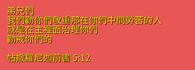 站外尋找帖撒羅尼迦前書5章12節更多資料:
