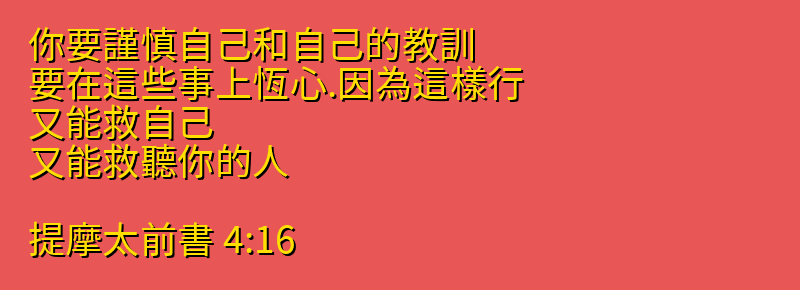 您對於提摩太前書聖經「你要謹慎自己和自己的教訓、要在這些事上恆心.因為這樣行、又能救自己、又能救聽你的人。」有何comment?