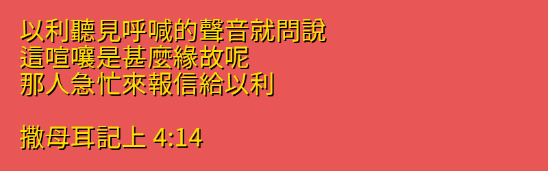 今日分享的中文聖經:「以利聽見呼喊的聲音就問說、這喧嚷是甚麼緣故呢.那人急忙來報信給以利。」來自聖經「撒母耳記上」第「4章14節」,你可以繼續向下拉看到聖經卷書完整章節。每日中文聖經從神的話語中聆聽神的聲音,引導我們的人生,指導我們人生的方向,讓我們做出正確的選擇,而做出這些正確選擇的原則都在聖經中,所以我們需要讀神的話語,認識他的話語,把神的話語藏在心裡。