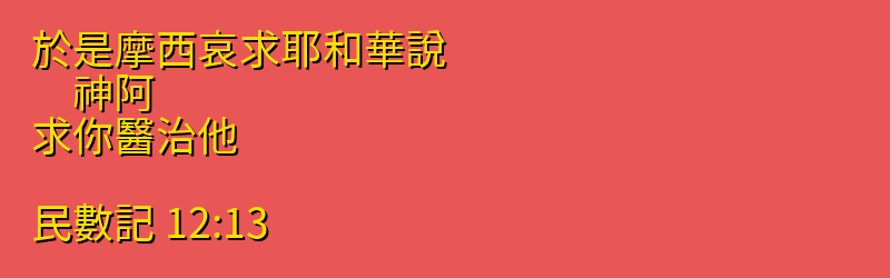 • 12:13 於是摩西哀求耶和華說、 神阿、求你醫治他。