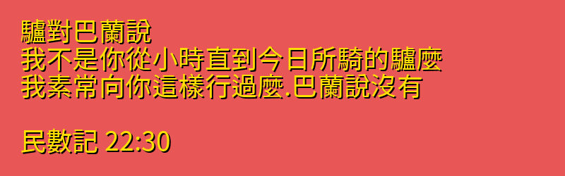 驢對巴蘭說、我不是你從小時直到今日所騎的驢麼。我素常向你這樣行過麼.巴蘭說沒有。