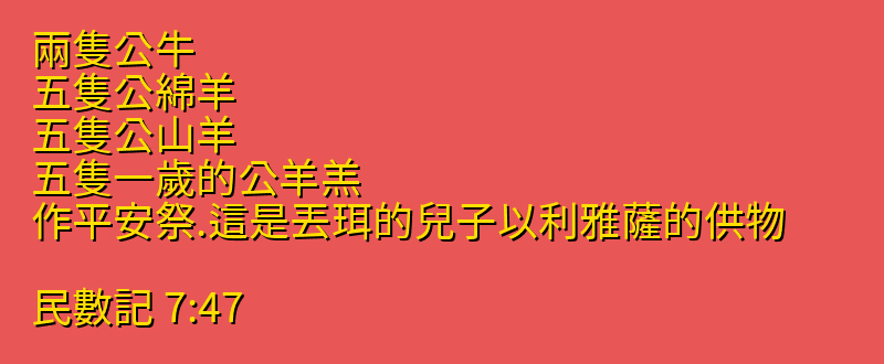 站外尋找民數記7章47節更多資料: