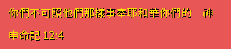 今日分享的中文聖經:「你們不可照他們那樣事奉耶和華你們的 神。」來自聖經「申命記」第「12章4節」,你可以繼續向下拉看到聖經卷書完整章節。每日中文聖經從神的話語中聆聽神的聲音,引導我們的人生,指導我們人生的方向,讓我們做出正確的選擇,而做出這些正確選擇的原則都在聖經中,所以我們需要讀神的話語,認識他的話語,把神的話語藏在心裡。