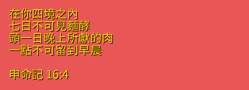 在你四境之內、七日不可見麵酵.頭一日晚上所獻的肉、一點不可留到早晨。