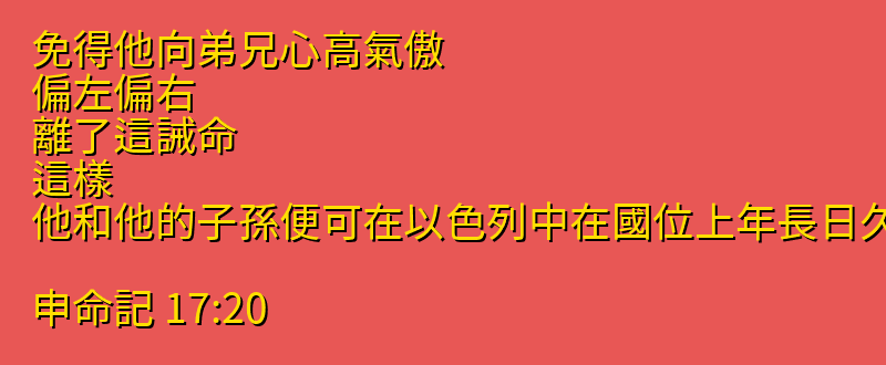 您對於申命記聖經「免得他向弟兄心高氣傲、偏左偏右、離了這誡命.這樣、他和他的子孫便可在以色列中在國位上年長日久。」有何comment?