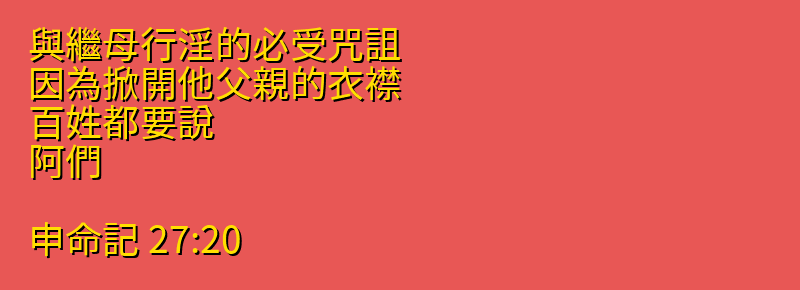 與繼母行淫的必受咒詛、因為掀開他父親的衣襟.百姓都要說、阿們。