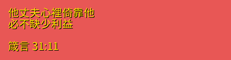 今日分享的中文聖經:「他丈夫心裡倚靠他、必不缺少利益.」來自聖經「箴言」第「31章11節」,你可以繼續向下拉看到聖經卷書完整章節。每日中文聖經從神的話語中聆聽神的聲音,引導我們的人生,指導我們人生的方向,讓我們做出正確的選擇,而做出這些正確選擇的原則都在聖經中,所以我們需要讀神的話語,認識他的話語,把神的話語藏在心裡。
