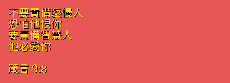 不要責備褻慢人、恐怕他恨你.要責備智慧人、他必愛你。