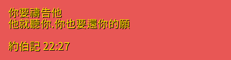 今日分享的中文聖經:「你要禱告他、他就聽你.你也要還你的願。」來自聖經「約伯記」第「22章27節」,你可以繼續向下拉看到聖經卷書完整章節。每日中文聖經從神的話語中聆聽神的聲音,引導我們的人生,指導我們人生的方向,讓我們做出正確的選擇,而做出這些正確選擇的原則都在聖經中,所以我們需要讀神的話語,認識他的話語,把神的話語藏在心裡。