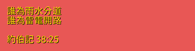 今日分享的中文聖經:「誰為雨水分道、誰為雷電開路.」來自聖經「約伯記」第「38章25節」,你可以繼續向下拉看到聖經卷書完整章節。每日中文聖經從神的話語中聆聽神的聲音,引導我們的人生,指導我們人生的方向,讓我們做出正確的選擇,而做出這些正確選擇的原則都在聖經中,所以我們需要讀神的話語,認識他的話語,把神的話語藏在心裡。