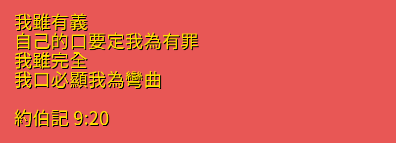 我雖有義、自己的口要定我為有罪.我雖完全、我口必顯我為彎曲。