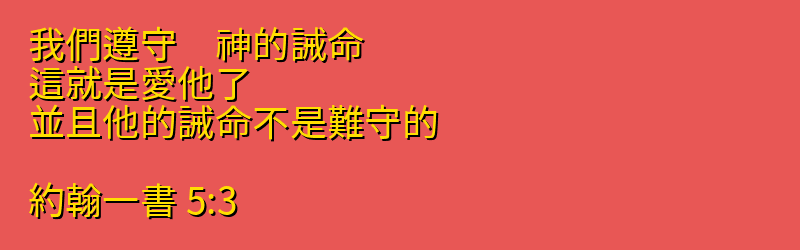 • 5:3 我們遵守 神的誡命、這就是愛他了.並且他的誡命不是難守的。