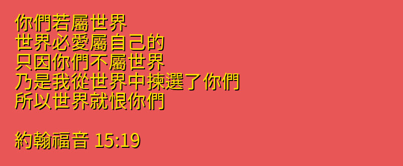 你們若屬世界、世界必愛屬自己的.只因你們不屬世界.乃是我從世界中揀選了你們、所以世界就恨你們。