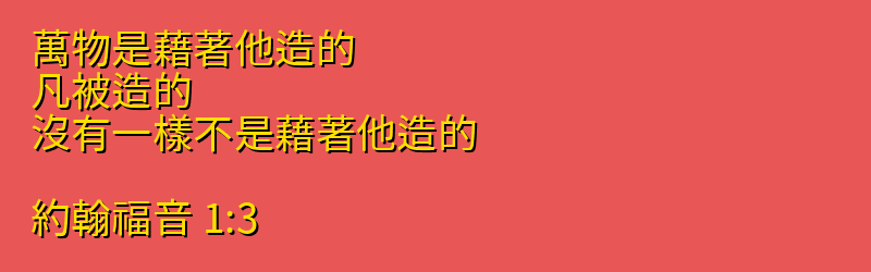 • 1:3 萬物是藉著他造的.凡被造的、沒有一樣不是藉著他造的。