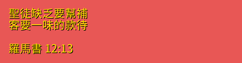 今日分享的中文聖經:「聖徒缺乏要幫補.客要一味的款待。」來自聖經「羅馬書」第「12章13節」,你可以繼續向下拉看到聖經卷書完整章節。每日中文聖經從神的話語中聆聽神的聲音,引導我們的人生,指導我們人生的方向,讓我們做出正確的選擇,而做出這些正確選擇的原則都在聖經中,所以我們需要讀神的話語,認識他的話語,把神的話語藏在心裡。