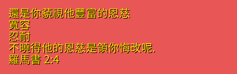 還是你藐視他豐富的恩慈、寬容、忍耐、不曉得他的恩慈是領你悔改呢.