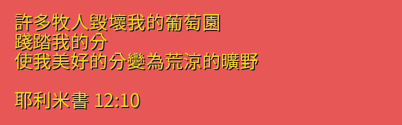 許多牧人毀壞我的葡萄園、踐踏我的分、使我美好的分變為荒涼的曠野。