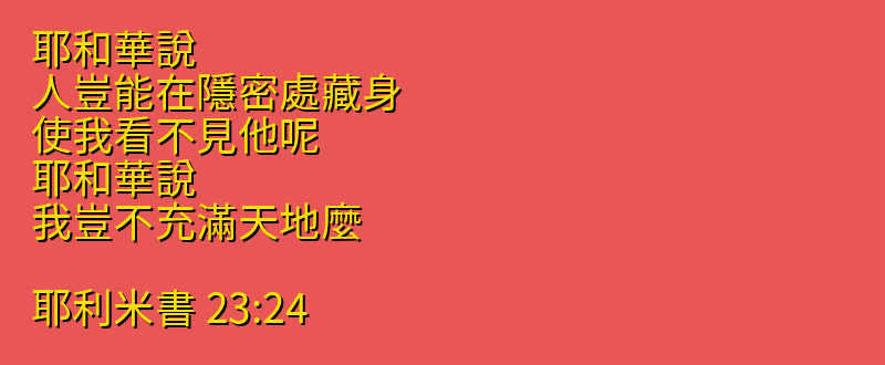 耶和華說、人豈能在隱密處藏身、使我看不見他呢.耶和華說、我豈不充滿天地麼。