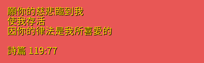 願你的慈悲臨到我、使我存活.因你的律法是我所喜愛的。
