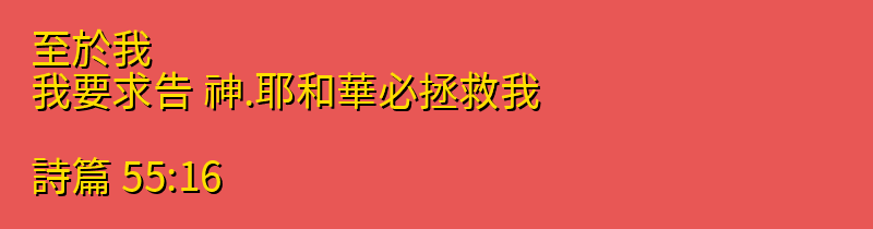 今日分享的中文聖經:「至於我、我要求告 神.耶和華必拯救我。」來自聖經「詩篇」第「55章16節」,你可以繼續向下拉看到聖經卷書完整章節。每日中文聖經從神的話語中聆聽神的聲音,引導我們的人生,指導我們人生的方向,讓我們做出正確的選擇,而做出這些正確選擇的原則都在聖經中,所以我們需要讀神的話語,認識他的話語,把神的話語藏在心裡。