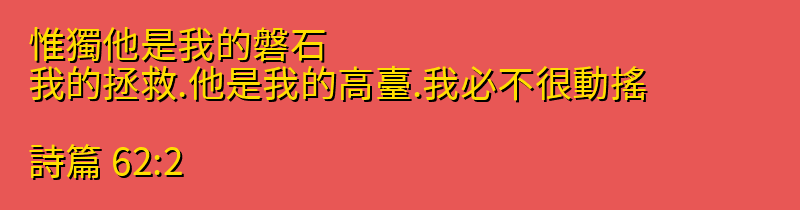 惟獨他是我的磐石、我的拯救.他是我的高臺.我必不很動搖。