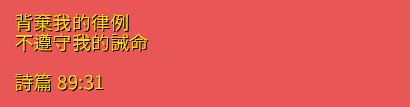 今日分享的中文聖經:「背棄我的律例、不遵守我的誡命.」來自聖經「詩篇」第「89章31節」,你可以繼續向下拉看到聖經卷書完整章節。每日中文聖經從神的話語中聆聽神的聲音,引導我們的人生,指導我們人生的方向,讓我們做出正確的選擇,而做出這些正確選擇的原則都在聖經中,所以我們需要讀神的話語,認識他的話語,把神的話語藏在心裡。