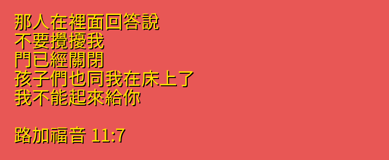 那人在裡面回答說、不要攪擾我.門已經關閉、孩子們也同我在床上了.我不能起來給你。
